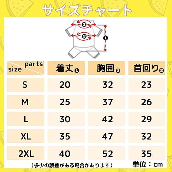 ・サイズ:S 着丈:約20cm 胸囲:約32cm 首回り:約23cm/M 着丈:約25cm 胸囲:約37cm 首回り:約26cm/M 着丈:約25cm 胸囲:約37cm 首回り:約26cm/L 着丈:約30cm 胸囲:約42cm 首回り:約29cm/XL 着丈:約35cm 胸囲:約47cm 首回り:約32cm/2XL 着丈:約40cm 胸囲:約52cm 首回り:約35cm/1~2cmほどの誤差がある場合があります。