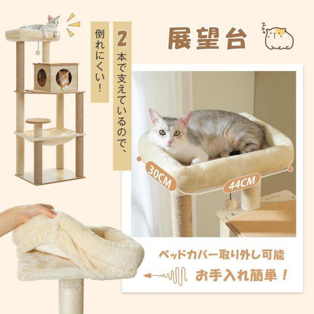 【2本で支える展望台!】一本の柱だけでは折れるリスクが高く、猫ちゃんが危ないです、本製品は2本で支えているので、太めな猫ちゃんも、活発な猫ちゃんも大丈夫!ベッドカバー取り外し可能なので、お手入れ簡単!