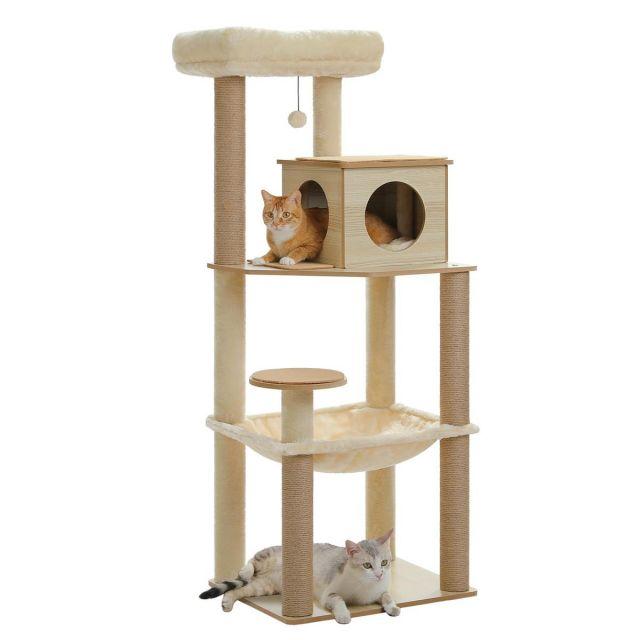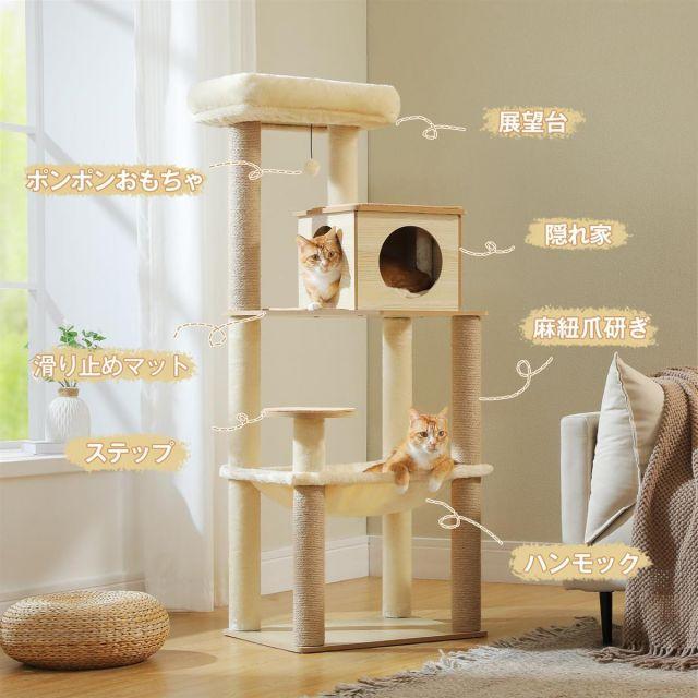 スタイル:据え置き◆商品名:PETEPELA(ペテペラ)キャットタワー大型猫用木製スリム猫タワー省スペース多頭飼い据え置き木目調おしゃれ人気隠れ家見晴台爪研ぎポール滑り止めマットシニア猫子猫登りやすい安定運動不足解消-143cm