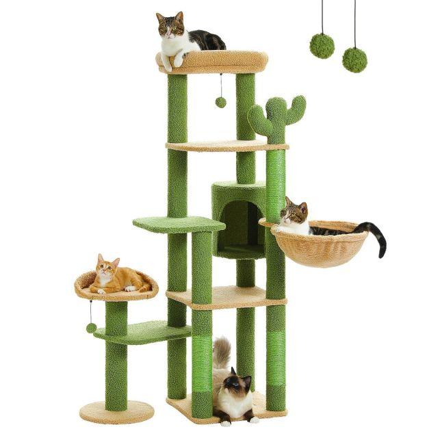 スタイル:据え置き◆商品名:PETEPELA(ぺテぺラ)キャットタワーサボテンスリム多頭飼い大型猫用据え置きおしゃれ爪とぎポール猫ハウスハンモック猫タワー爪研ぎサイザル麻ポンポンおもちゃ高さ150cmグリーン