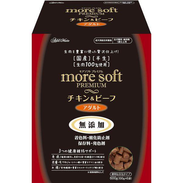 ペティオ 4903588137457 more soft プレミアム チキン&ビーフ アダルト 600g生肉を豊富に使った贅沢仕上げ!生肉を100%使用。腸内の免疫強化に乳酸菌(KT-11株)を配合し免疫強化。α-リノレン酸が豊富なアマニ油を配合し、皮膚・被毛に配慮。保存料・着色料・酸化防止剤・発色剤不使用。●商品管理番号:4903588137457●生産地:日本●サイズ:パッケージサイズ:(W)140×(H)175×(D)90(mm)/(重量)650g●素材:<原材料>