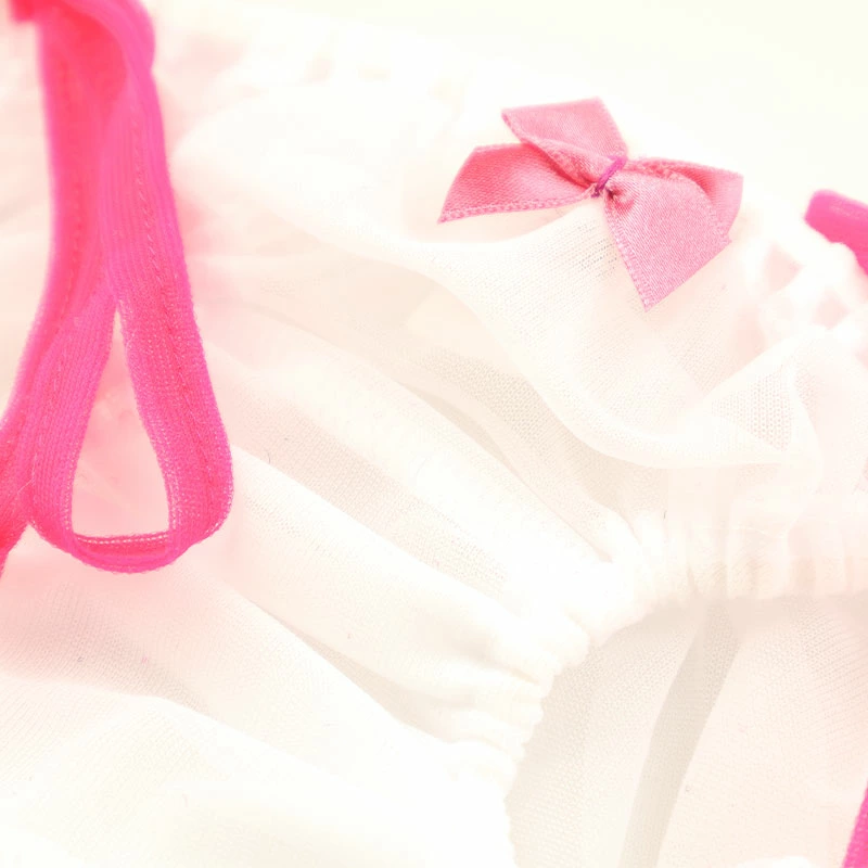 軽くてふんわりとしたエアリー感のある20ハーフ生地を使用したフルバックショーツです。シースルー素材が軽やかで柔らかく、肌にやさしくフィットします。サイドはスッと解ける脇ヒモデザインで、クシュクシュとした可愛らしい見た目のインゴムタイプになっており、軽やかな履き心地を実現。置き寸で股上約10.5cmのローライズ仕様で、日常使いにも快適なフルバックショーツです。