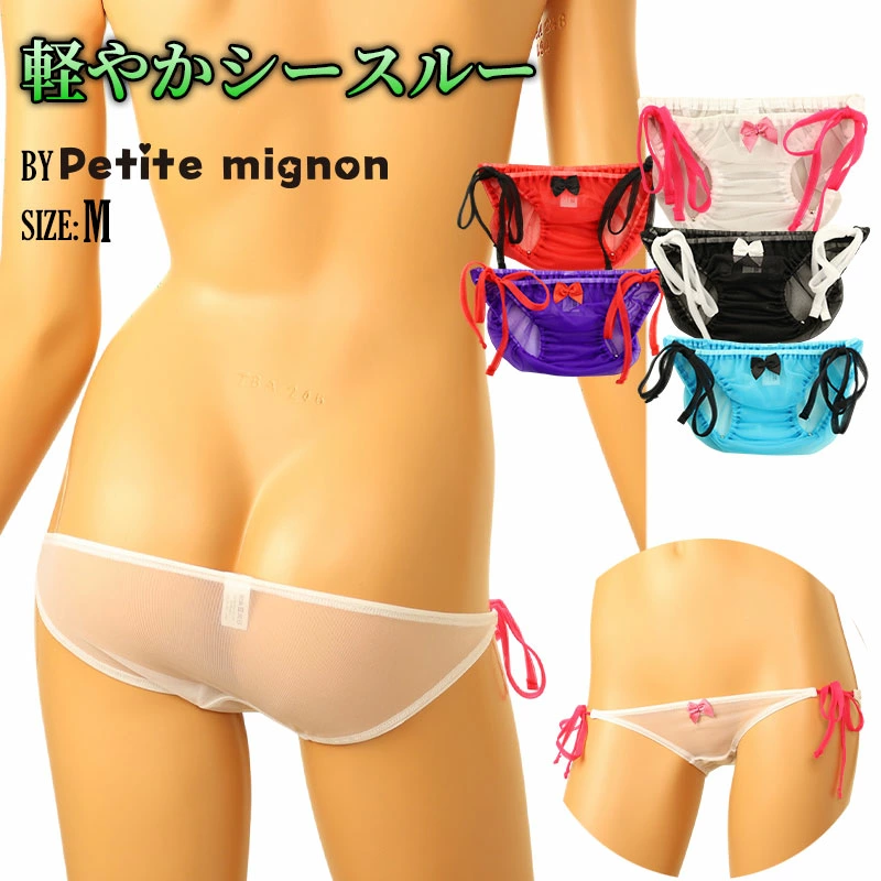 軽くてふんわりとしたエアリー感のある20ハーフ生地を使用したフルバックショーツです。シースルー素材が軽やかで柔らかく、肌にやさしくフィットします。サイドはスッと解ける脇ヒモデザインで、クシュクシュとした可愛らしい見た目のインゴムタイプになっており、軽やかな履き心地を実現。置き寸で股上約10.5cmのローライズ仕様で、日常使いにも快適なフルバックショーツです。