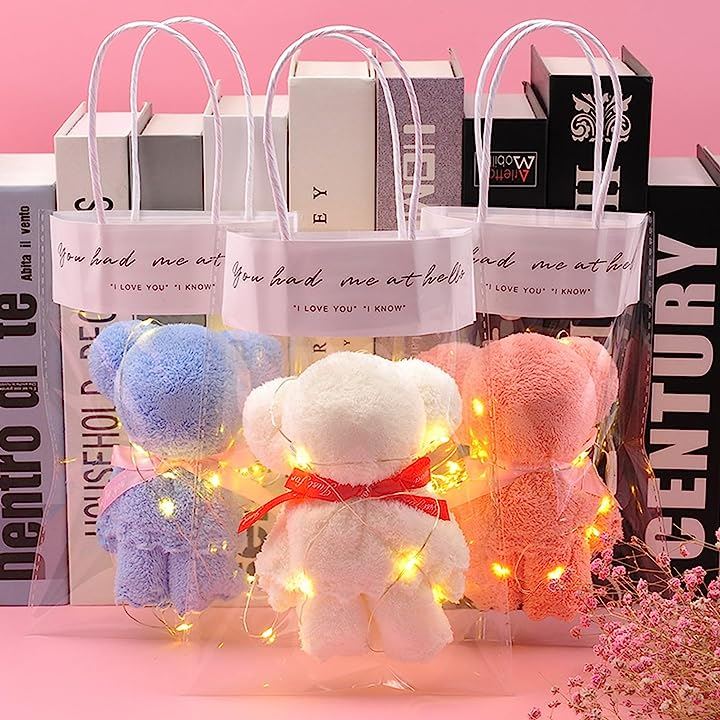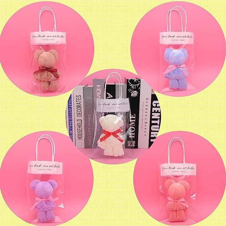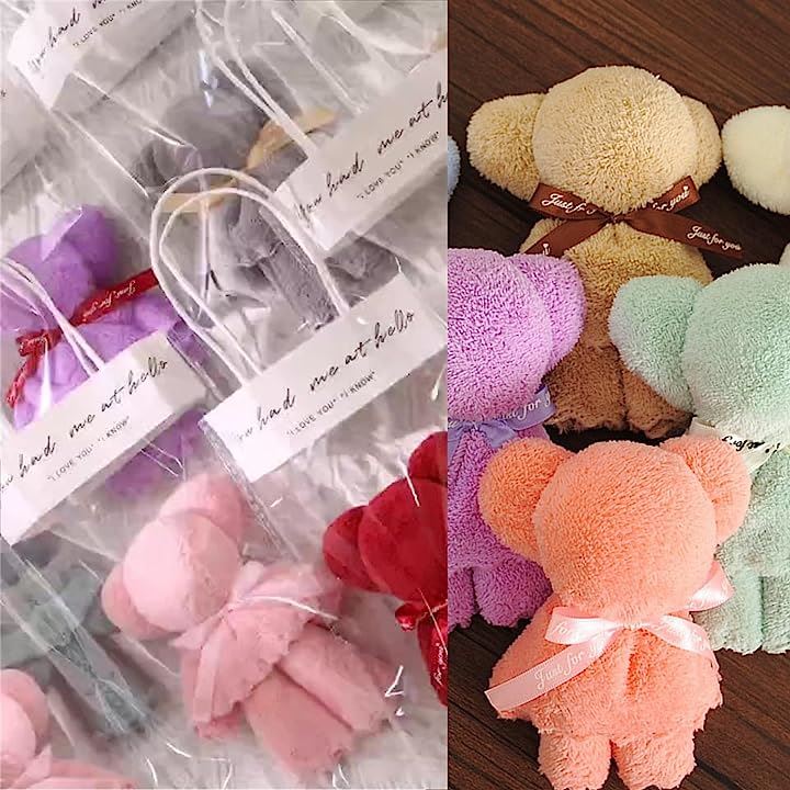 10 個セット くまタオル各5色x2、クリアバック 10枚