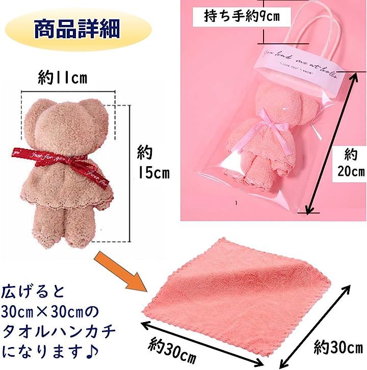 ハンドタオルで作った可愛いクマさんのプチギフトです。