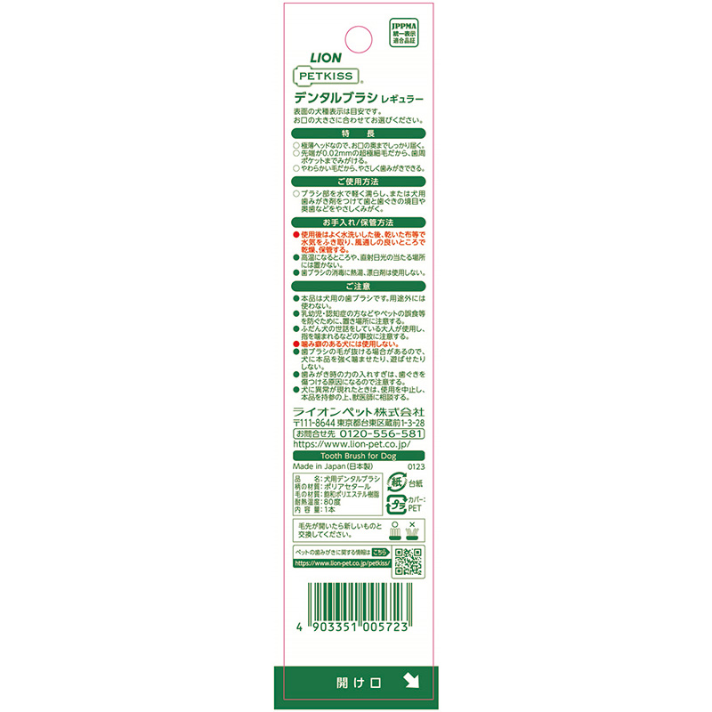 ・極薄ヘッドなので、お口の奥までしっかり届く。・先端が0.02mmの超極細毛だから歯周ポケットまでみがける。・やわらかい毛だから、やさしく歯みがきできる。・ミニチュアダックス、柴、フレンチ・ブルドック、シーズー、パグ、キャバリアなどにおすすめ。