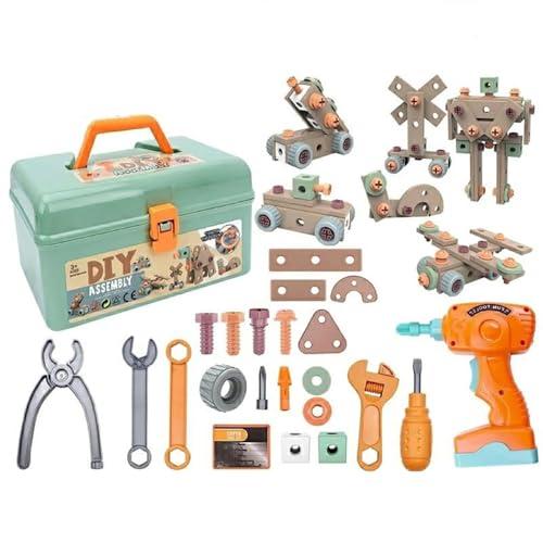 144PCS子供工具セット 私達の子供工具セットはドリル、ペンチ、スパナ、活働スパナ、口ねじ、ドライバー、錠板、ドリ、内六角ナット、ネジ、木のブロックと子供の名刺を含みます。おもちゃの道具は私たちが日常使っている本物の道具のようです。 良質の子供の道具幼児の道具セットは安全で、丈夫で、無毒のABSプラスチック材質を採用して、縁は丸くて滑らかです。おもちゃの工具セットは本物そっくりの工具の色を採用して、環境にやさしい防水塗料を塗って、子供に害がありません。 エンジニアふり游児童キット持参ドリル2つの穴に見せかけ、模擬ドリルの声と運動を回転することができる。(単三電池2本が必要です)ナットとボルトを組み合わせて、子供たちの想像力でいろいろな仕組みを作ることができます。 携帯工具箱子供工具箱は単なるおもちゃではなく、道具を収納する箱です。遊び終わったら、自分のおもちゃを箱に入れる方法を学びます。子供たちは屋内でも屋外でも建築用具を持ち運ぶことができます。 完璧な教育ギフト子供のツールセットは、男の子や女の子への素敵なギフトです。遊びのふり祭り誕生日子供の日クリスマスのプレゼントなど完璧な教育と開発のためのおもちゃです玩具工具セットは3歳4歳5歳6歳7歳のお子様向けです。