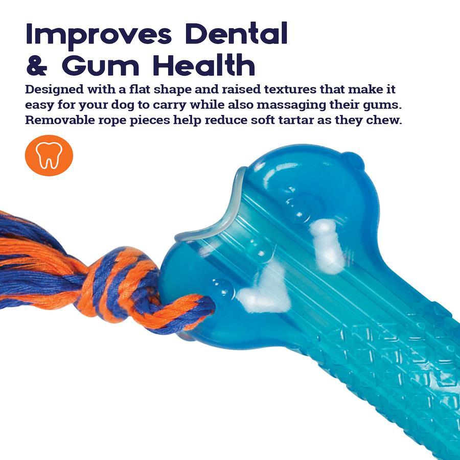 水に浮く!弾む! オルカ・ボーンのちょうどいい弾力と厚さは、歯ぐきのマッサージだけでなくあごの筋肉を鍛えます。 ロープの束は歯石を溜めにくくする手助けに!