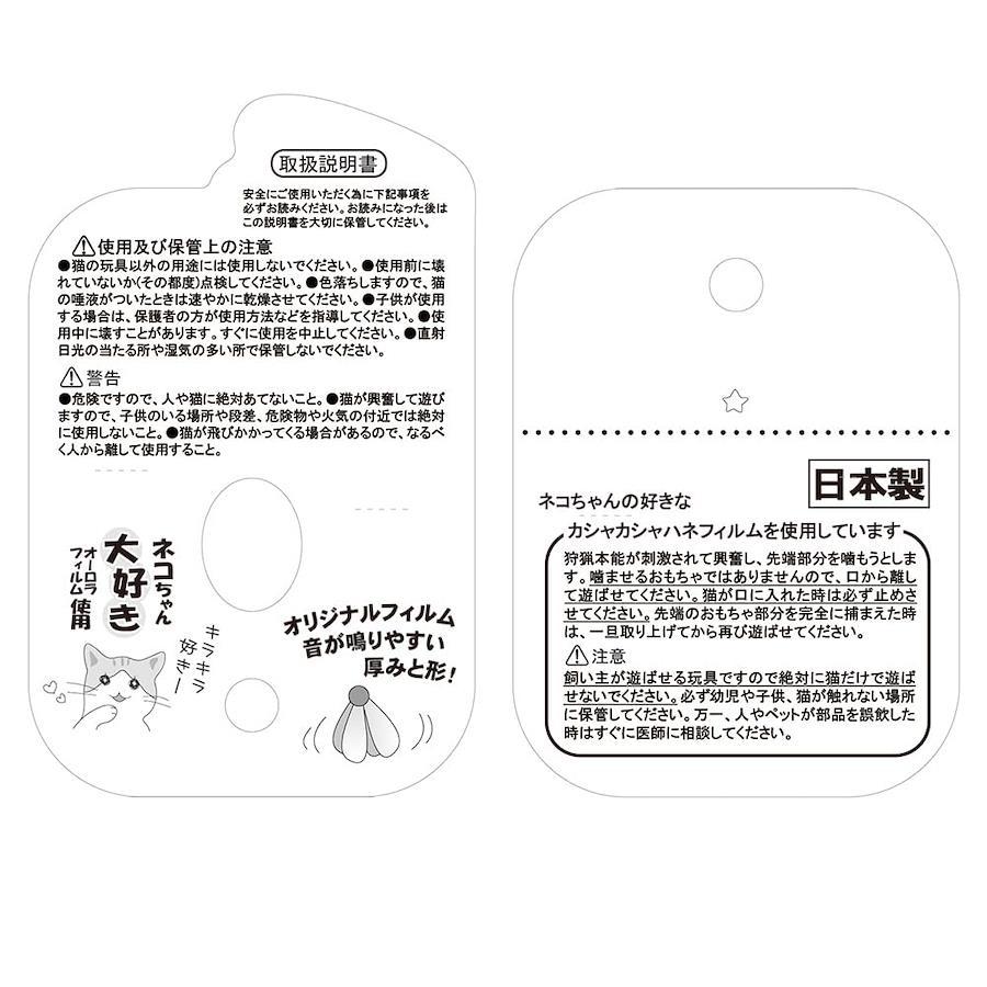 警告:猫が興奮して遊びますので、子供のいる場所や段差、危険物や火気の付近では絶対に使用してはいけません。危険ですので、棒の先またはハネ部分のフィルムを人や猫に絶対あててはいけません。