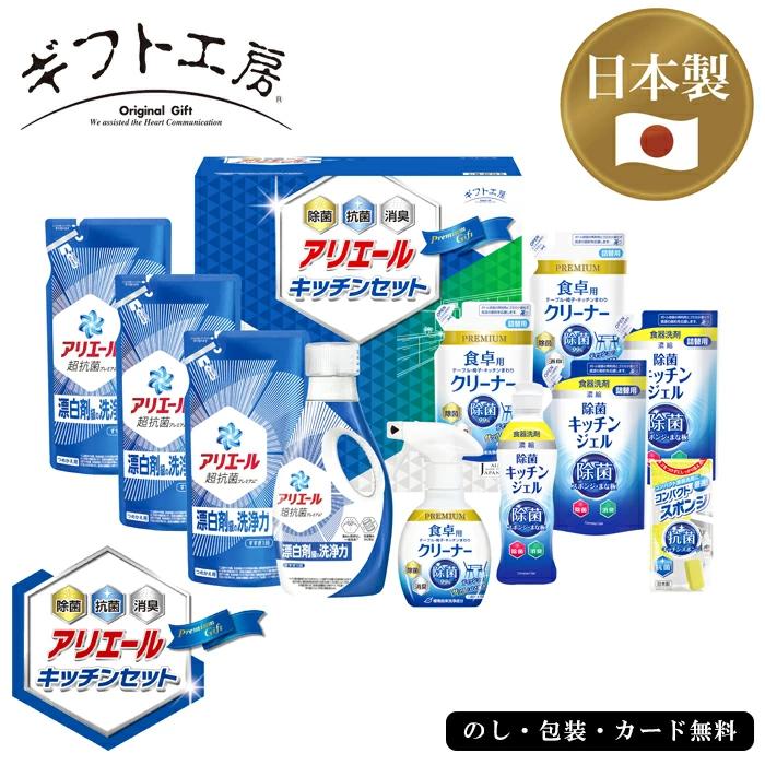コンパクトスポンジ、P&Gアリエールジェル720g×各1、詰替405g×3、除菌キッチンジェル200ml×1、詰替160ml×2、食卓用クリーナー260ml×1、詰替250ml×2