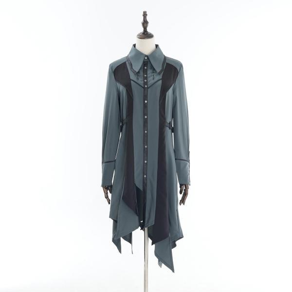 "永久に紡ぐ、幻影の残響の世界漂う、ロングブラウスが登場!!アシンメトリーに拘り、随所にエッジの効いたギミックを使用したデザインの為、スタイリッシュにご着用いただけるアイテムになります!!左右に便利なシームポケット付き〇伸縮性のある生地を使用している為、様々な方におすすめのアイテムになります。ロング丈の為、パンツスタイルから、スカートスタイルまで、幅広いコーディネートにご利用いただけます。