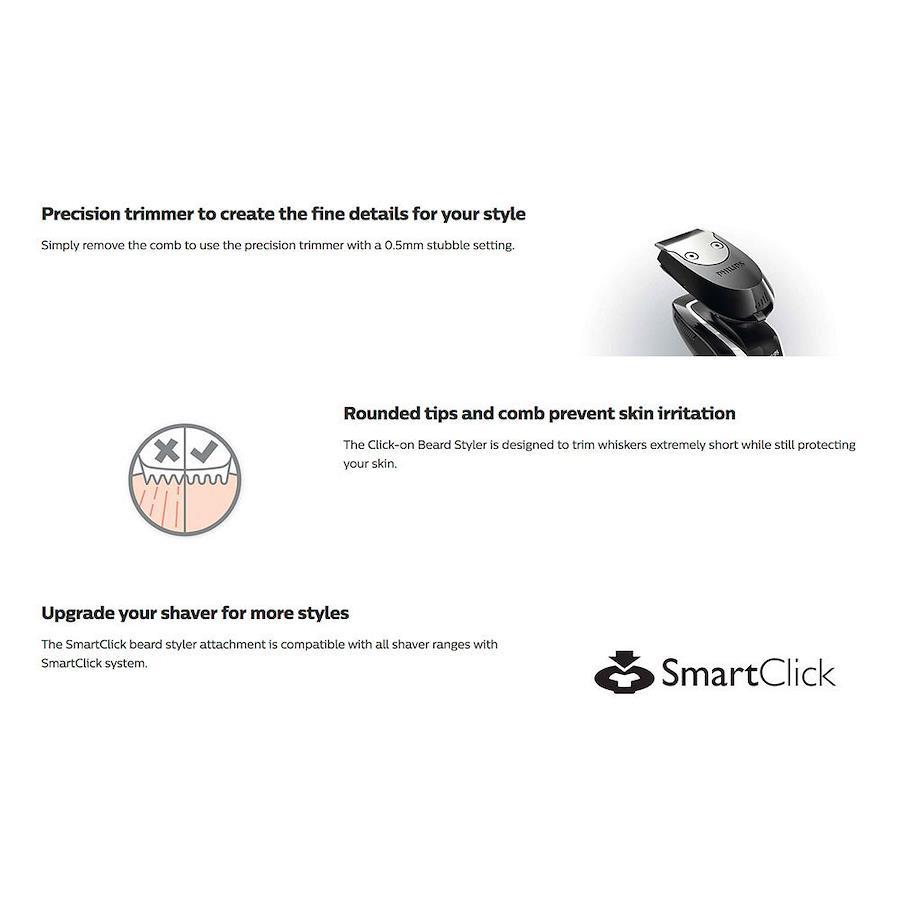 1. ヒゲスタイラーのコームを3mm位に調整し、口ヒゲの長さをそろえる。ボリュームをもたせたいときは、コームをやや長めに調整