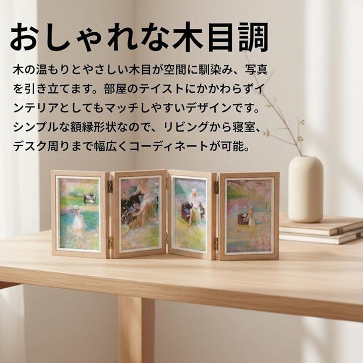 「おしゃれな木目」木の温もりとやさしい木目が空間に馴染み、写真を引き立てます。
