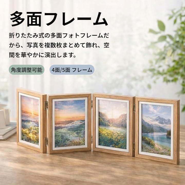 「多面で演出」折りたたみ式の多面フォトフレームだから、写真を複数枚まとめて飾れて視線が集まります。