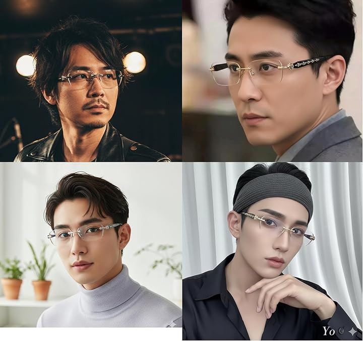 「洗練されたリムレスデザイン」 知的な印象を与える縁なし(リムレス)のスクエアフレーム。