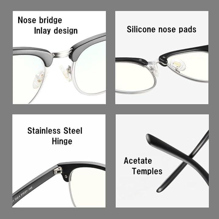 洗練されたサーモントフレーム:クラシックなデザインで知的な印象を与え、軽量設計(26g)により長時間着用しても疲れにくい快適な掛け心地を実現。