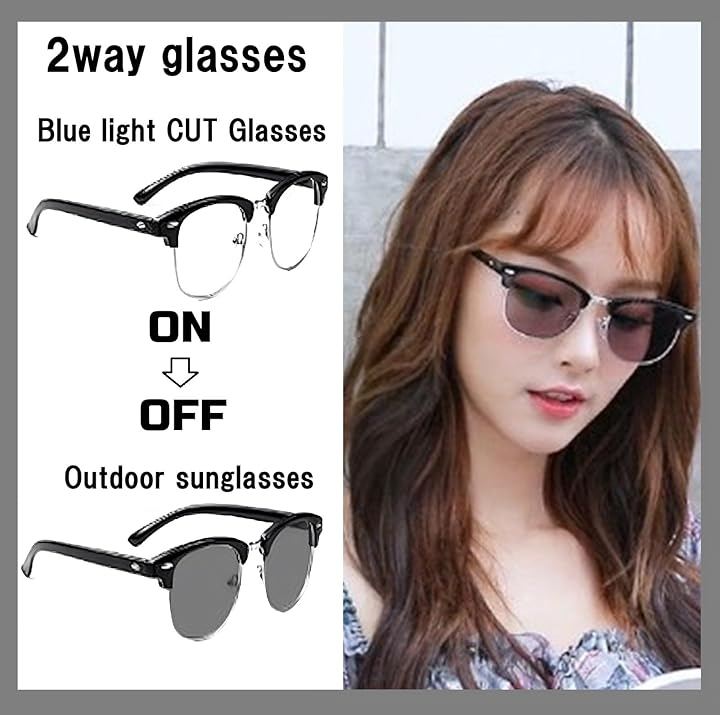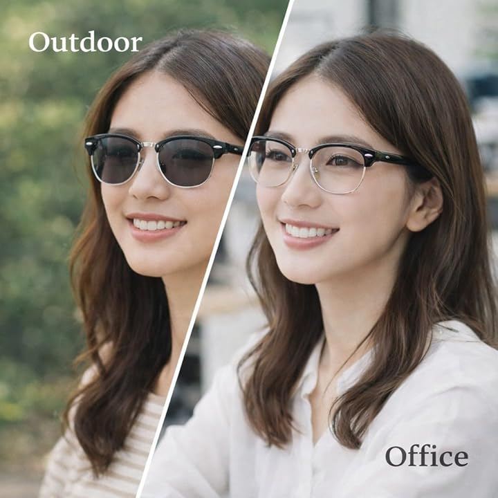 室内ではクリアなPCメガネとして、屋外では眩しさを抑えるサングラスとして、1本で2役をこなします。