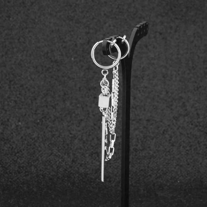 耳元で揺れるチェーンが、クールでお洒落な印象を与え、日常から特別なシーンまで幅広く活躍します。