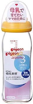 Pigeon [Heat-resistant glass 240ml] Breast milk bottle Orange yellow From 0 months (Attached nipple is from around 3 months)