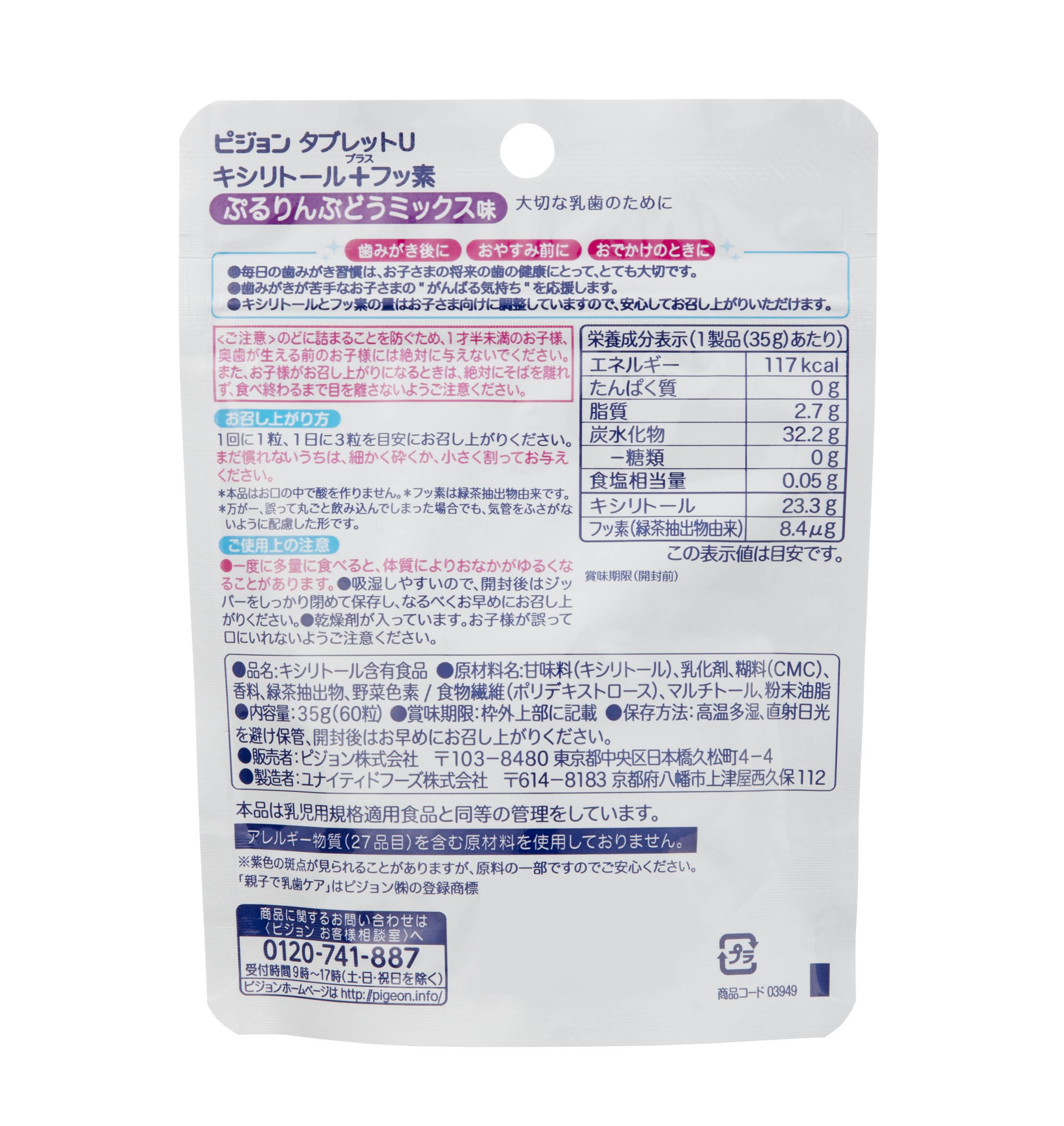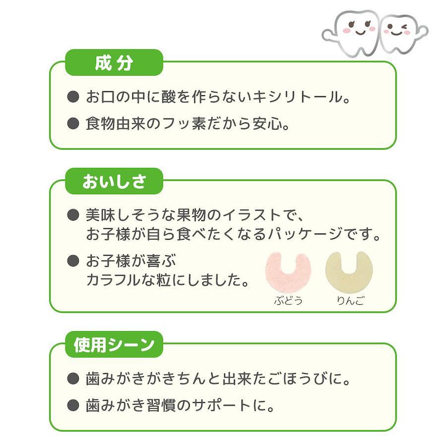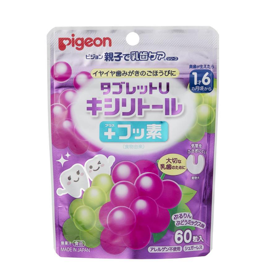 ●お口の中に酸を作らないキシリトール配合のタブレットです。●緑茶抽出物由来のフッ素を配合。食物由来だから安心。●誤って飲み込んだ場合でも、気管をふさがないよう配慮した形です。●食後のおやつやちょっとしたごほうび、おでかけの時に。●シュガーレス・アレルゲン不使用。●1才6ヵ月頃から(奥歯が生えたら)。●もぎたてりんごミックス味。●本品は乳児用規格適用食品と同等の管理をしています。●アレルギー物質(27品目中)を含む原材料を使用しておりません。【原材料】甘味料(キシリトール)、乳化剤、糊料(CMC)、香料、紅花色素、緑茶抽出物/食物繊維(ポリデキストロース)、マルチトール、粉末油脂【栄養成分】1製品(35g)あたりエネルギー120kcal、たんぱく質0g、脂質3.2g、炭水化物31.7g、糖類0g、食塩相当量0.05g、キシリトール23.3g、フッ素(緑茶抽出物由来)8.4μg【お召し上がり方】1回に1粒、1日に3粒を目安にお召し上がりください。まだ慣れないうちは、細かく砕くか、小さく割ってお与えください。歯のトラブルの多い、妊娠期のプレママにもおすすめです。 商品サイズ (幅×奥行×高さ) :10.5×3×14cm メーカー名: ピジョン ブラント名: ピジョン 内容量:60粒 原産国:日本 毎日の歯みがき習慣はお子様の将来の歯の健康にとって、とても大切です。