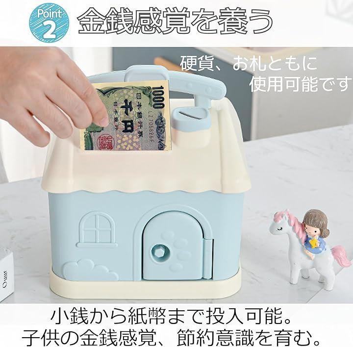 「 金銭感覚を養う」この貯金箱は、小銭から紙幣まで投入可能で、子供の節約意識や金銭感覚を育みます。