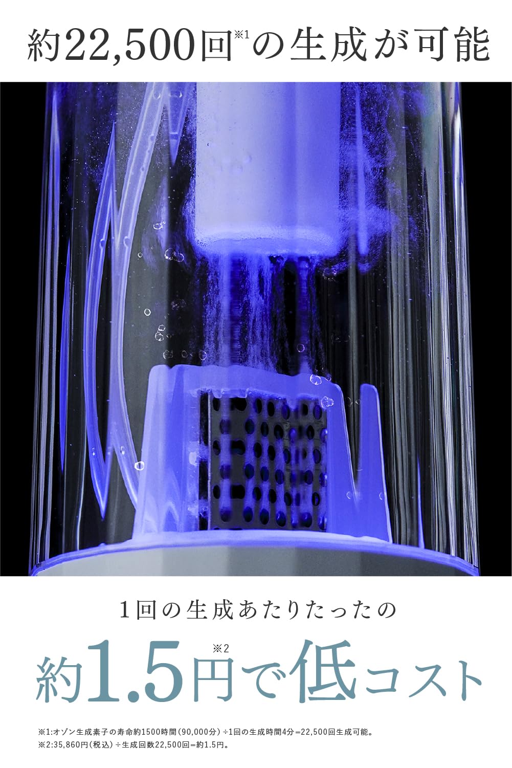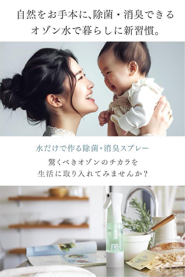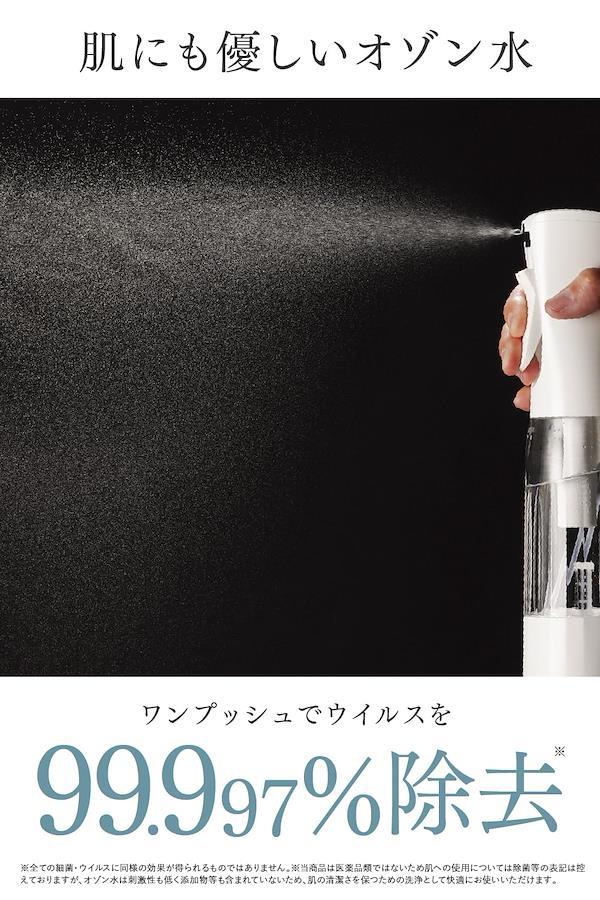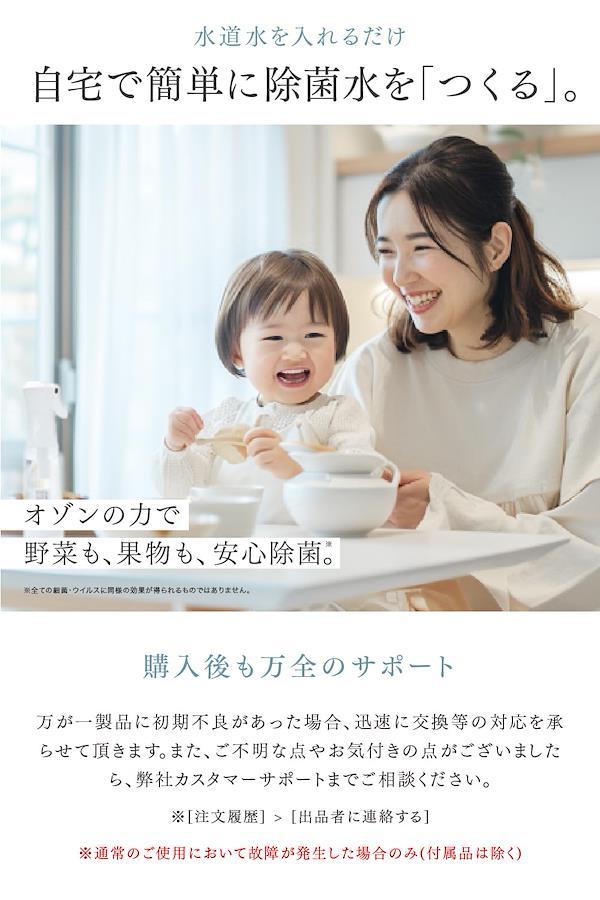 3営業日以内に発送≪新品未開封品≫:家庭用 オゾン水生成器 「Ozone Mist」水道水だけでできる除菌オゾン水独自のオゾン水生成技術搭載ボトルベース:底面直径11.5cm×奥行9.1cm×高さ3.6cm / 本体ボトル:底面直径6.5cm×奥行7.9cm×高さ25.5cm / 質量:ボトルベース(アダプター含む) 約215g、本体ボトル(スプレーノズル含む) 約230g / セット内容:・本体(オゾン生成素子は消耗品) ×1、ボトルベース ×1、スプレーノズル(消耗品) ×1、取扱説明書 ×1