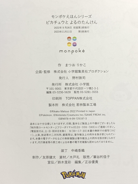 Pikachu's Nighttime Adventure: Monpoke Picture Book Series, Shogakukan, by Rikako Matsuo
