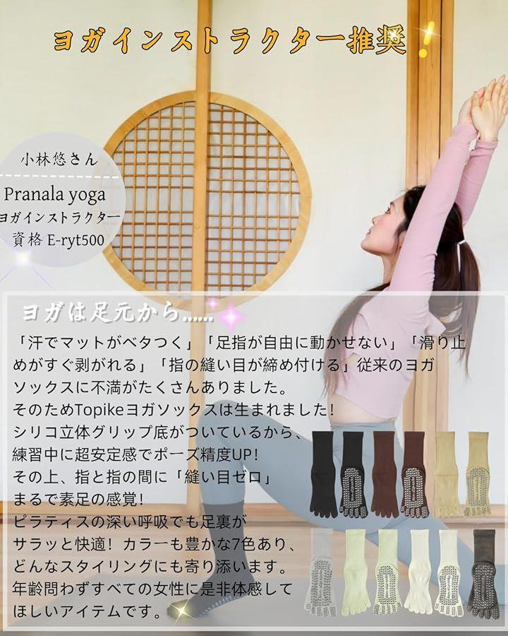 Point 1「商品詳細」ヨガ・ピラティス・ダンス等に大人気の滑り止め付き5本指ヨガソックスが新登場。(1)日本サイズ:約22.5-25cm対応(2)素材:コットン、ポリウレタン(滑り止め:シリコン)(3)カラー:ブラック、ホワイト、グリーン、ライトグレー、カーキ、ダークグレー、ブラウン