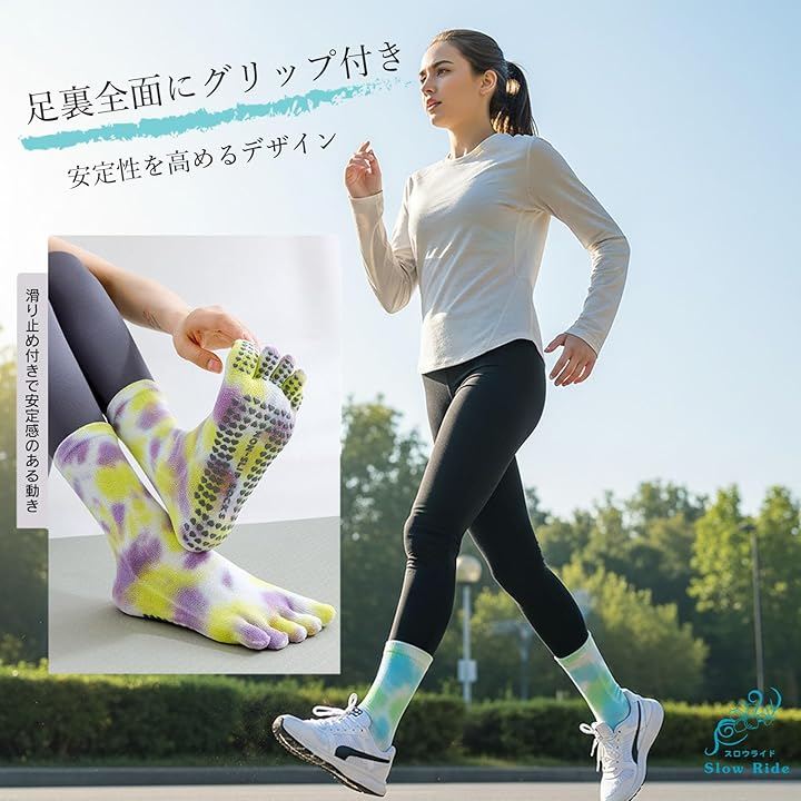 おしゃれでかわいい5本指グリップソックスが、足元を安定させトレーニングを快適に。