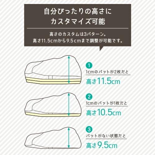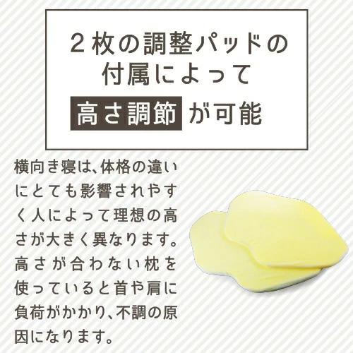【ご使用前に…】ご使用中、背中や首などが痛くなったりするようであればご使用を中止してください。5~10分程度の少ない時間から試してください。【高さの調整について】本品は高さをお好みで調整できるよう、厚さ1cmの調整パッドを2枚まで内蔵可能です。裏面のファスナーを開け、調整パッドを入れてお使いください。【使用上のご注意】直射日光に長時間あてないでください。火気または温度の高いものには近づけないでください。製品の特性上、気温が低い場合は若干硬くなることがありますが不良品ではございません。ウレタン特有の臭いがすることがありますが、気になる場合は風通しの良い日陰でしばらく陰干ししてからご使用ください。【枕カバーのお手入れ方法】裏面にあるファスナーを開け、本体のウレタン部分を取りだします。洗濯表示に従い、洗濯してください。※本体・調整パッドは洗濯できません。形を整えてから陰干ししてください。●材質/本体(中材):ウレタンフォーム、(カバー):ポリエステル調整パッド(中材):ウレタンフォーム、(側地):ポリエステル●サイズ/約W53.5×D36×H13cm首が乗る部分の高さ/約11.5cm頭が乗る部分の高さ/約9.5cm(※厚さ1cmの調整パッドが2枚入った状態)調整パッド:厚さ1cm(1枚)