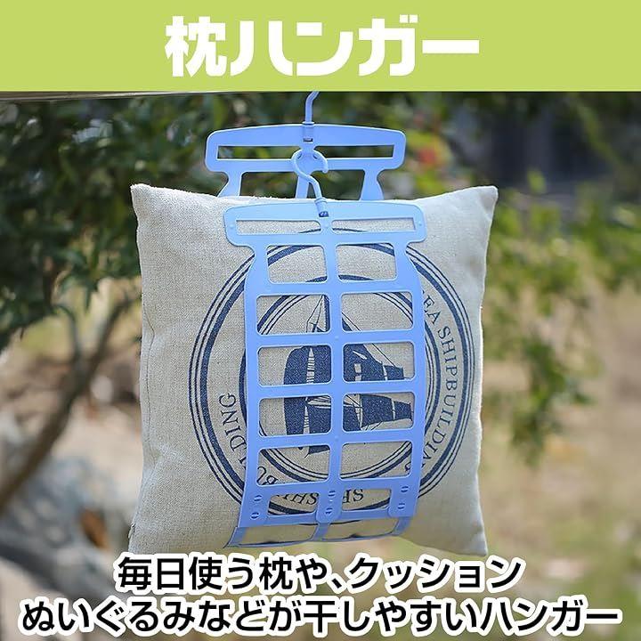 「大きめ枕やぬいぐるみの干しに最適」 この枕ハンガーは、大きめの枕やクッション、ぬいぐるみを干すのに最適です。
