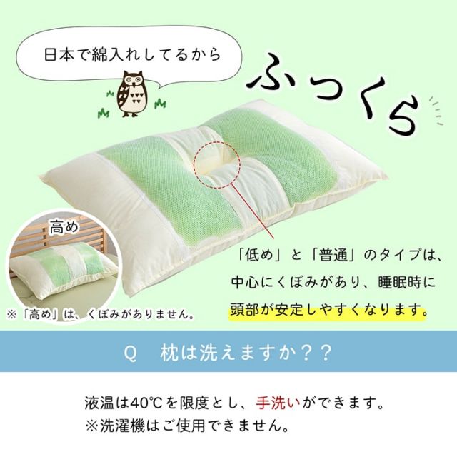 選べる高さが3種類。ご希望のサイズを選んで下さい。ヒバエッセンス練り込みパイプを使用しています。青森県のヒバの木から抽出した「ヒバエッセンス」をメーカー独自の技術でパイプに加工しました。ヒバエッセンスにはヒノキチオールという、天然物質としては極めて抗菌性の高い成分を含んでいます。(無加工品に比べ抗菌・防臭効果があります。)ヒバエッセンスで安らかな森の眠りをご提案します。パイプ使用のため、通気性がよく、熱がこもらず心地よくご使用できます。リバーシブルタイプでひばパイプ側、ポリエステルわた側の2種類の触感を楽しめます。※中材の出し入れはできません。