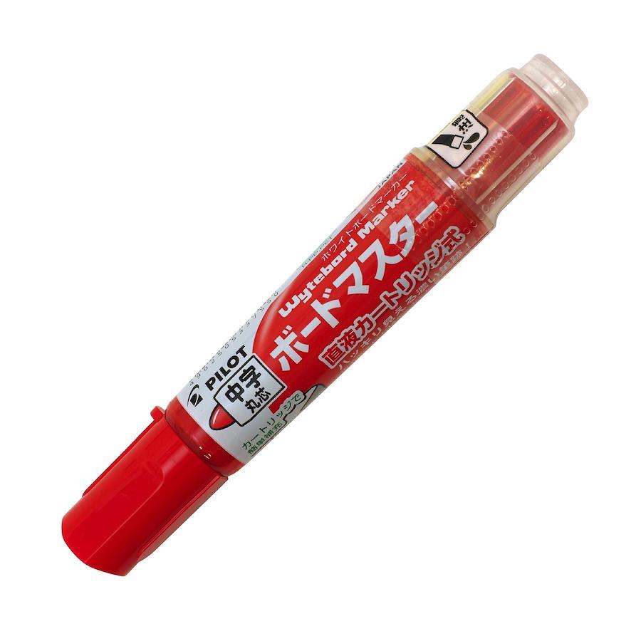 「濃くハッキリ書ける」直液カートリッジ式ホワイトボードマーカー「ボードマスター」です。。。ペン先:中字丸芯。インク色:レッド。カートリッジ品番:PWMRF8。替えペン先品番:PWMTIP9L。。。