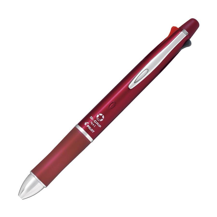 ●なめらかに濃く書ける油性インキ「アクロインキ」 ●「アクロインキ」は、当社の油性インキに比べ、約1/5のインキ粘度です。 ●また、潤滑剤を配合し、ペン先でのボールの摩擦抵抗を低減することで回転がスムーズ になり、なめらかで濃い筆跡を実現しました。 ●もちろん油性インキならではの優れた耐水性です。 ●ドクターグリップだからこその握りの信頼感 ●1991年発売以来「疲れにくいペン」の定番として歴史を刻んできたドクターグリップ。 ●その精神を受け継いだ、とことん使える多機能筆記具です。 ●4色ボールペン+シャープペン ●4色のボールペンをシチュエーションごとに使い分ければ、筆跡を見やすくコーディネートできます。 ●シャープペンなら思ったこと、感じたことをためらうことなくスピーディに書き消しできます