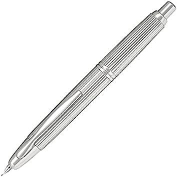 黄銅の素材にロジウム仕上げにし、高級感のある輝きに包まれたキャップレスとなっております。本体にダイヤカットでストライプ柄を採用しました。ペン種はF・Mの2種類。