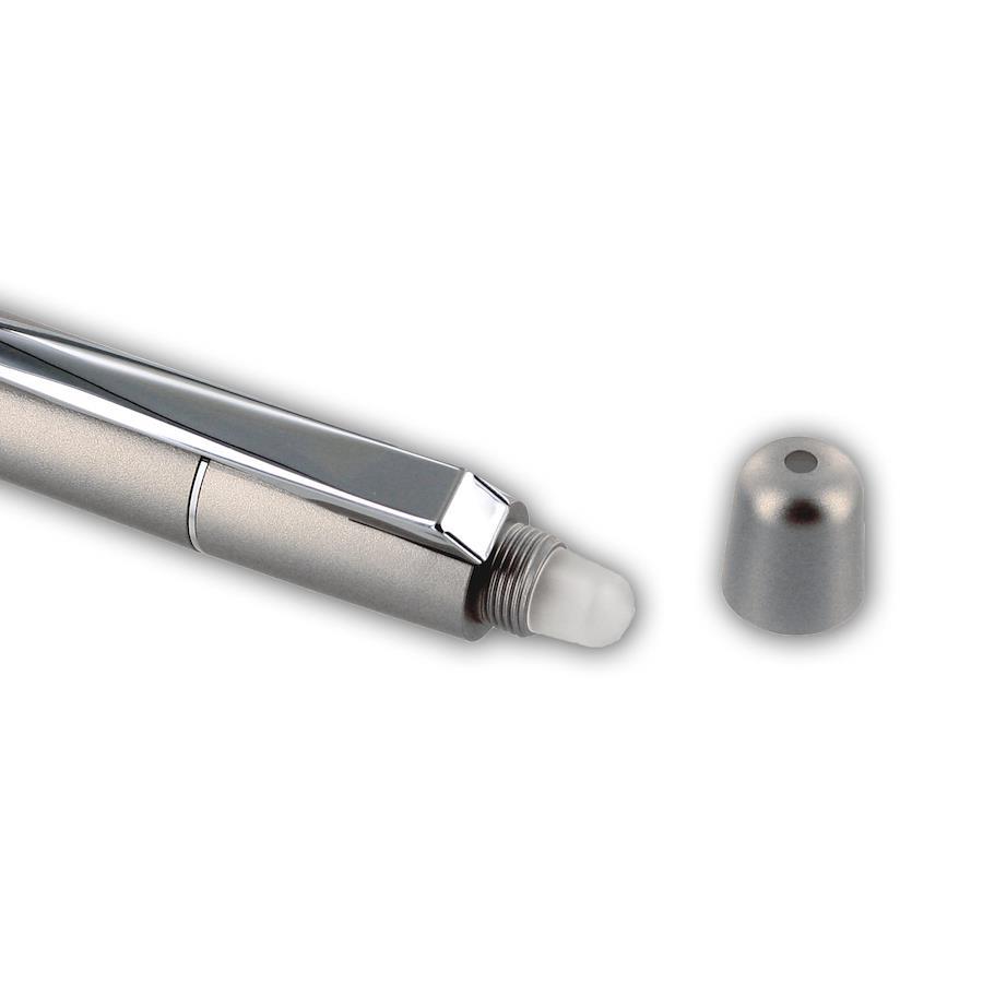 消えるボールペン「フリクション」に、ノック式のメタルボディタイプ「FRIXION。BALL。KNOCK。Biz/フリクションボールノックビズ」が登場! 。。頭部のキャップを外すと、中に消去用ラバーが埋め込まれています。書いた文字をこのゴムでこすると、摩擦熱によって筆跡が透明に変化。。温度変化を利用してインキを無色にするため、消しカスがでることもなく、何度でも書き・消しが可能です。。。ツヤ消しのメタリックボディは高級感があり、ビジネスシーンとの相性抜群! 。