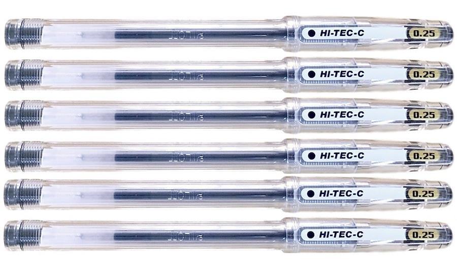 パイロット Hi-Tec-C 025 ゲルボールペン。 極細-0.25mmチップ。 ブラックインク(LH-20C25-B)。 原産国:日本