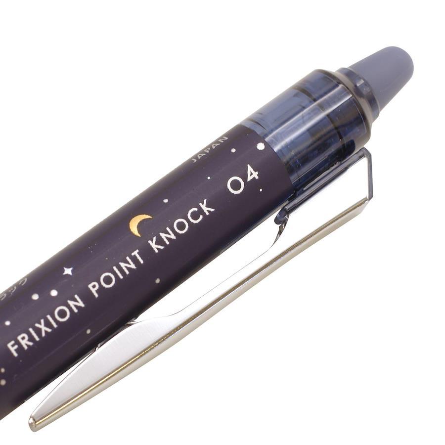 「フリクションポイントノック04」は、こすると消える「フリクション」の特長と、「シナジーチップ」の特長を活かし、スムーズな書き出しとなめらかな書き味を実現した超極細の消せるボールペンです。。「シナジーチップ」とは、細書きに適した極細のステンレスパイプの先端にくぼみをつけてボールを点で支える構造の「パイプチップ」と、一般的なボールペンに使われる、円錐形で、チップ強度が強く、安定して書きやすい「コーンチップ」のそれぞれの特長を活かした構造・形状のチップです。。