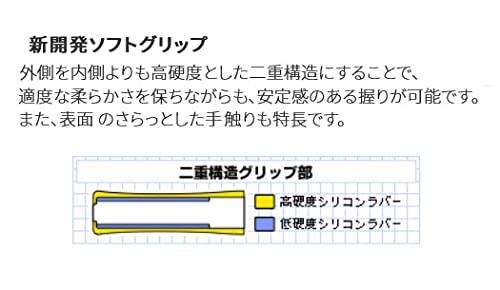 ○新開発ソフトグリップ・外側を内側よりも高硬度とした二重構造にすることで、適度な柔らかさを保ちながらも、安定感のある握りが可能です。また、表面 のさらっとした手触りも特長です。