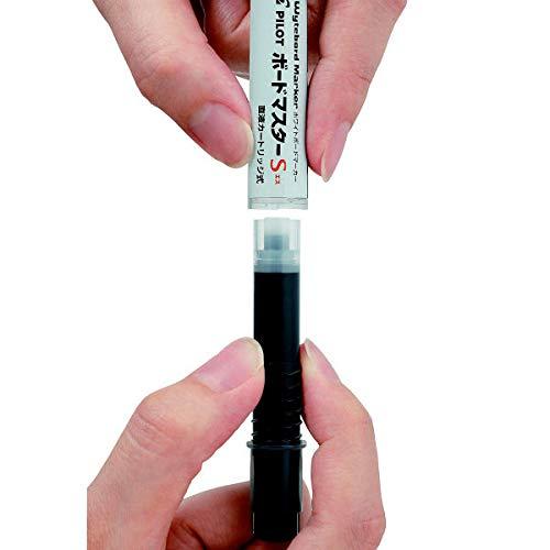ボードマスター細字タイプ専用の詰替カートリッジ。発色がいいので、くっきり書ける!ボードマスターはペン先への安定したインキコントロールを実現しました。ボード板への筆記を続けても、途中でかすれたりせずに常に濃く、くっきりと書くことができます。遠くからでもハッキリ見えるので、大会議室や教室にオススメです。また、インクの残量がわかりやすい。ホワイトボードはもちろん、電子ボード(OAボード)にも最適です。詰替式で経済的。詰め替えが簡単で、交換の際に手が汚れにくい。