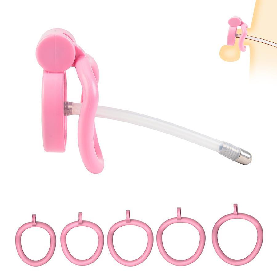 ピンク 貞操帯 フラット 男性用 贞操锁付き 5種類の異なる直径のリングを交換可能 smグッズ セット