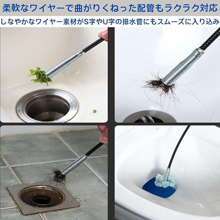 柔軟なワイヤーで曲がりくねった配管もラクラク対応 しなやかなワイヤー素材がS字やU字の排水管にもスムーズに入り込み、奥に詰まった汚れにも届きます。