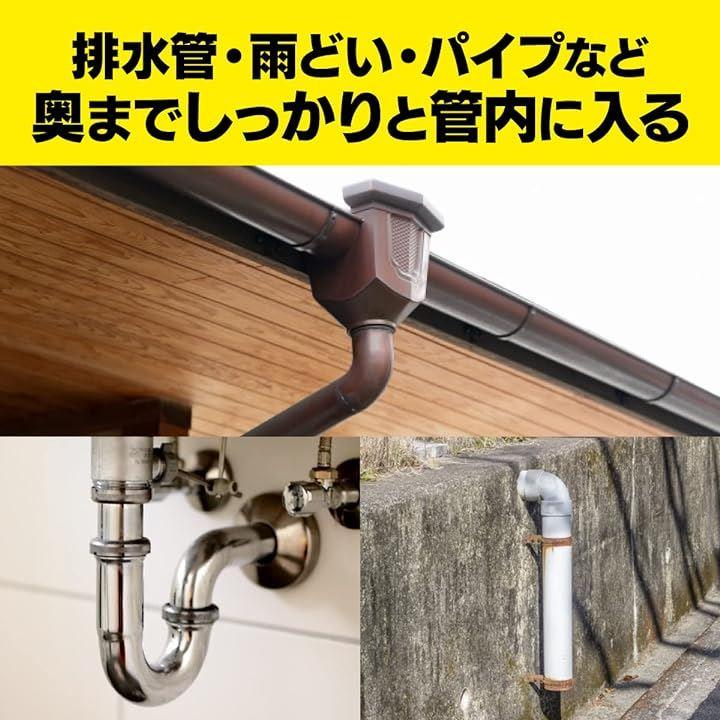 台所、排水桝、風呂、玄関、壁、駐車場他の清掃、キッチンの排水管、ダウンパイプ、雨水管、下水道管、塩ビ管,自宅トイレ・下水マスの詰まり、排水溝、雨どいにも簡単かつ迅速に清掃が可能です。