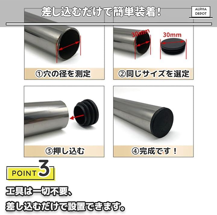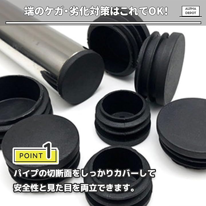 「パイプ先端をしっかりガード。」パイプの端に差し込むだけで露出部分をスマートに保護できて見た目もすっきり。