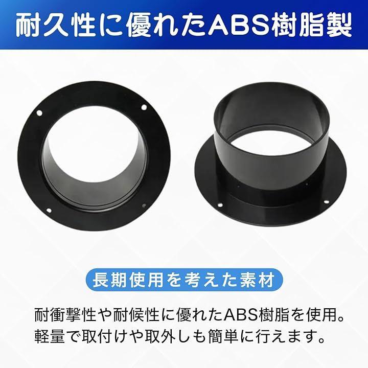「割れに強い配管フランジ」耐衝撃性・強度に優れたABS樹脂製の配管フランジで、ダクトホースや換気扇の接続部をしっかりと固定できます。