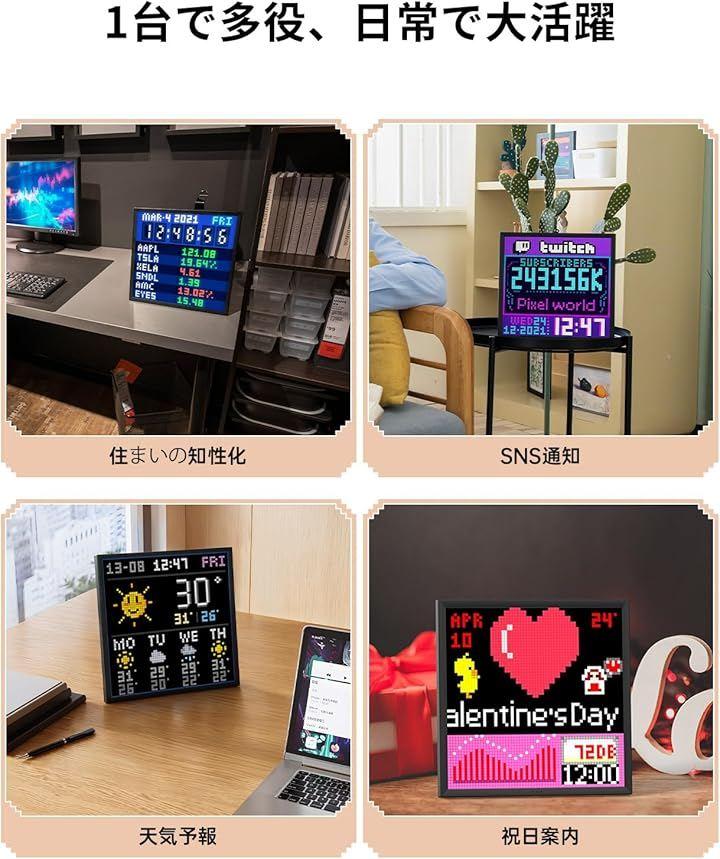 「WiFi接続、より多くの可能性」Pixoo 64はWiFi接続を介して使用されるため、Pixoo 64はより多くの可能性を持ち、より多くの情報ディスプレイやインテリジェントな音声機能にアクセスできる可能性があります。