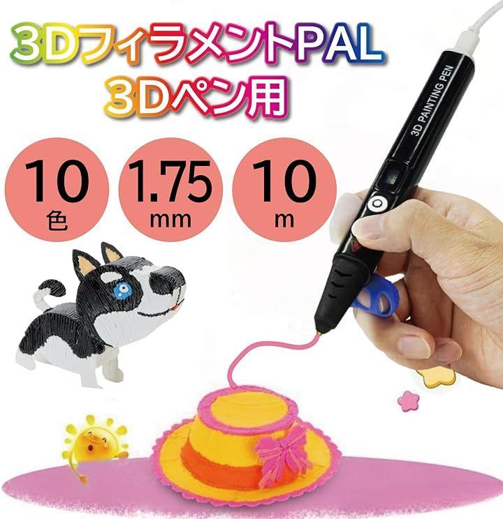 この3Dペン用フィラメントは、PLA素材で使いやすく、1.75mm径10色セットの1色10mずつでコストパフォーマンスが高いです。