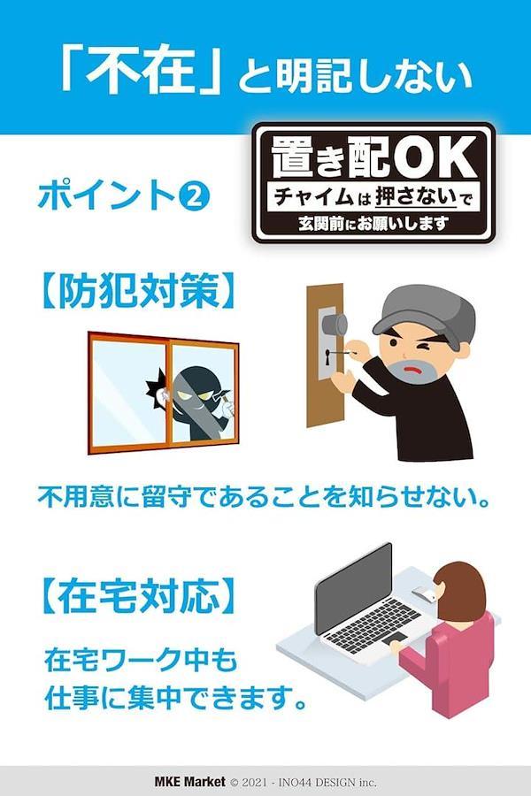 「不在を知らせない文言」防犯対策、在宅でも置き配OK。