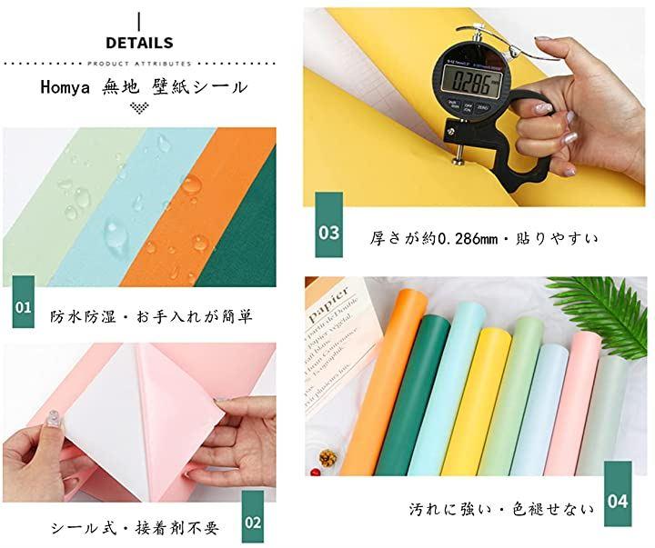 タイプ:無地/マカロン/光沢なし素材:PVCサイズ:約60cmx10m厚さ:約0.286mmカラー:白色、水色、橙色、イエロー、ライトグレー、ブルー、ベージュ、ピンク、ライトグリーン、灰色、濃緑、黒色。