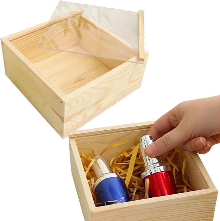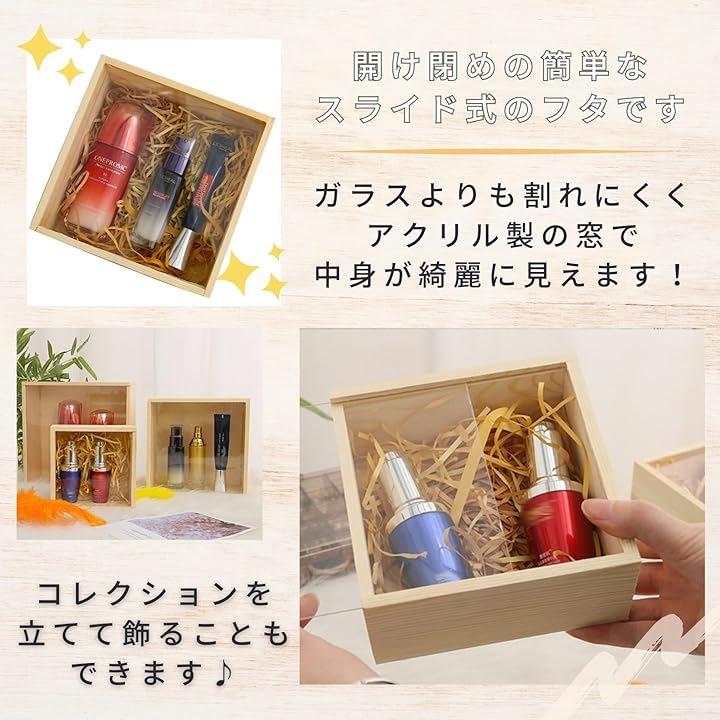 <サイズ>外寸:約12x12cm 高さ 約8cm 内寸:約10.5x10.5x7cm <入数>2個セット <素材>箱:天然木、窓:アクリル